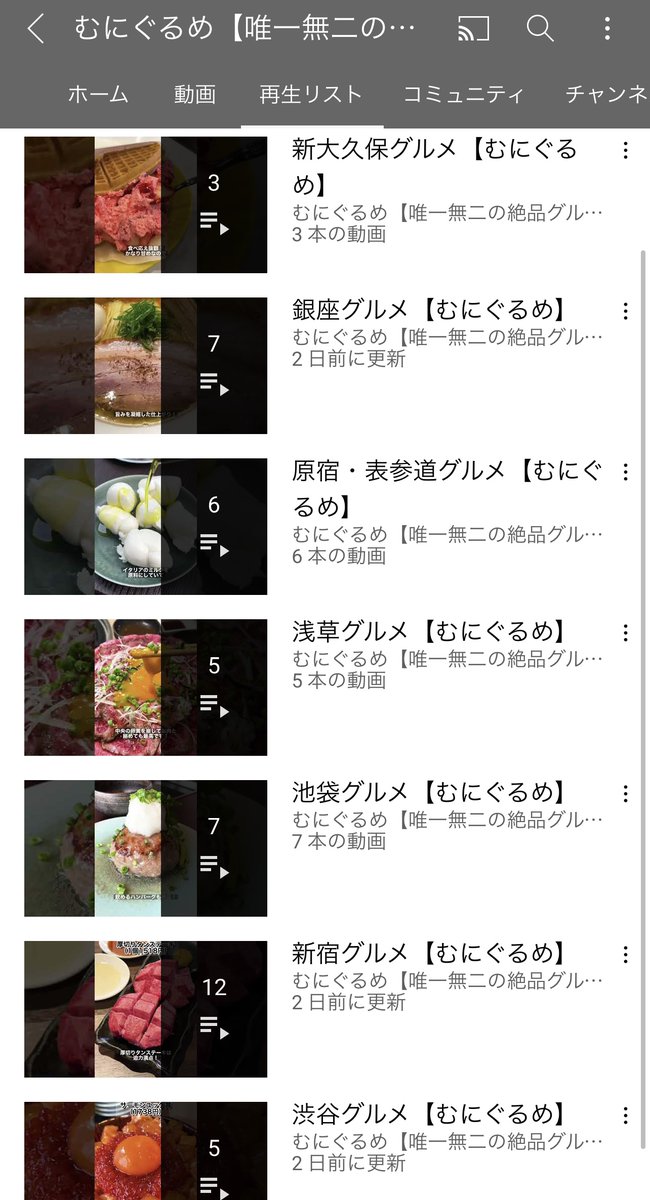 YouTubeは20~30秒くらいでパッと見れるグルメ動画を毎日投稿してます!エリア別に再生リストをまとめているので便利です!