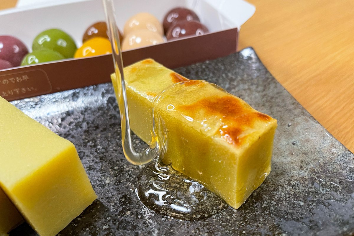 こちらもねっとりとした食感が特徴的で、ほうじ茶特有の香ばしさの中にほのかな甘さも感じられる仕上がりで、ほうじ茶粉を後掛けすることが出来ます!(動画後半に載せてます)