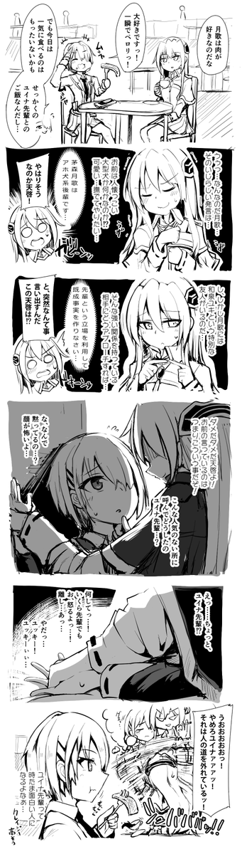 「正直外套を脱いだユイナ先輩の印象は、優しくて頼りになるけど二人きりの時はちょっとえっちになるエ○ゲの先輩キャラみたいであります!」 「……!!!?(あの顔)」