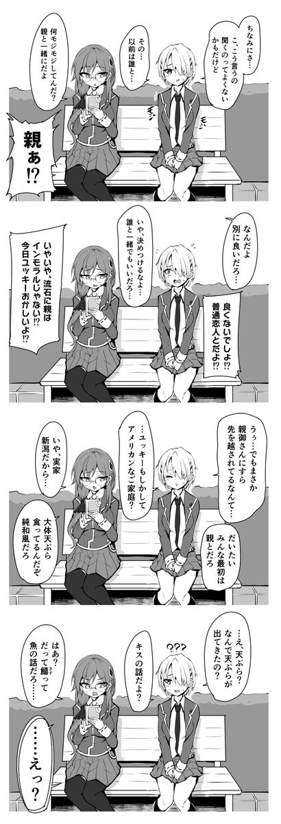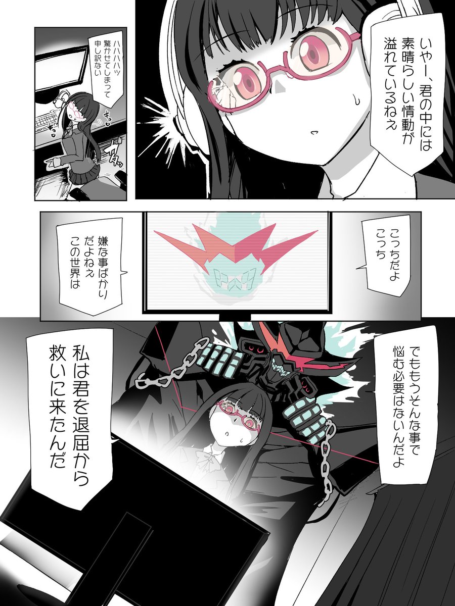 「いやいや…保護者はどうみても俺でしょ…」 「しかし山中暦、俺から見ればお前よりも飛鳥川ちせの方が保護者としては適任に見える」 「マジか…てかナイトさんの保護者は本当にこの子なんですか?」 「そうだ。彼女が俺をこの世に産み落とした。」 「は、母親…!?(嘘だろこの子女子高生じゃ…)」