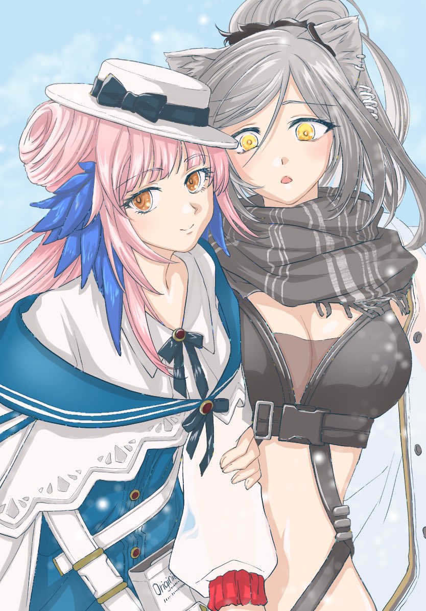 秘書マドロック、素顔を晒すのは慣れないって言うなら、ヤトウさんの仮面借りたらいいんじゃないかと思ったんですよ。ただ描きはじめたころに水着コーデがバァーン!して我ドクター吃驚のあまり描くの投げ出していた絵です。