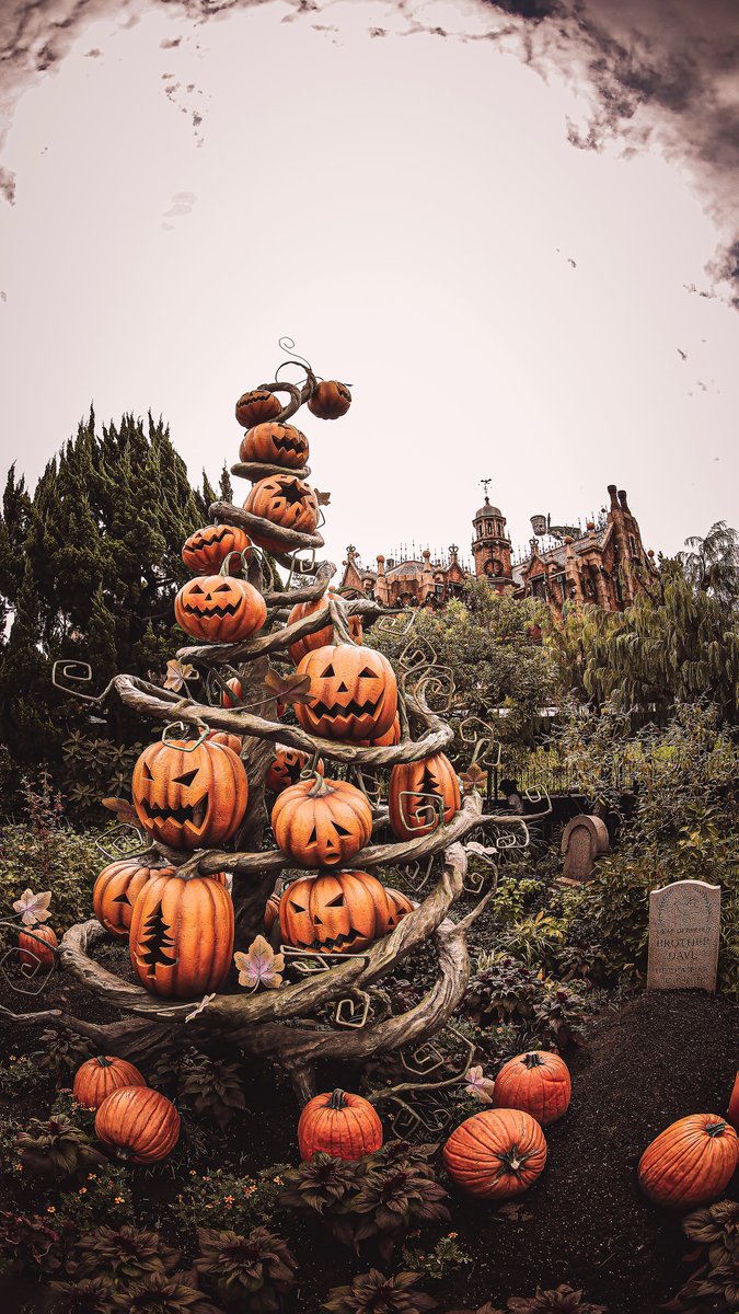 ディズニーランドの恐怖の館に飾られた大きな パンプキンツリー。