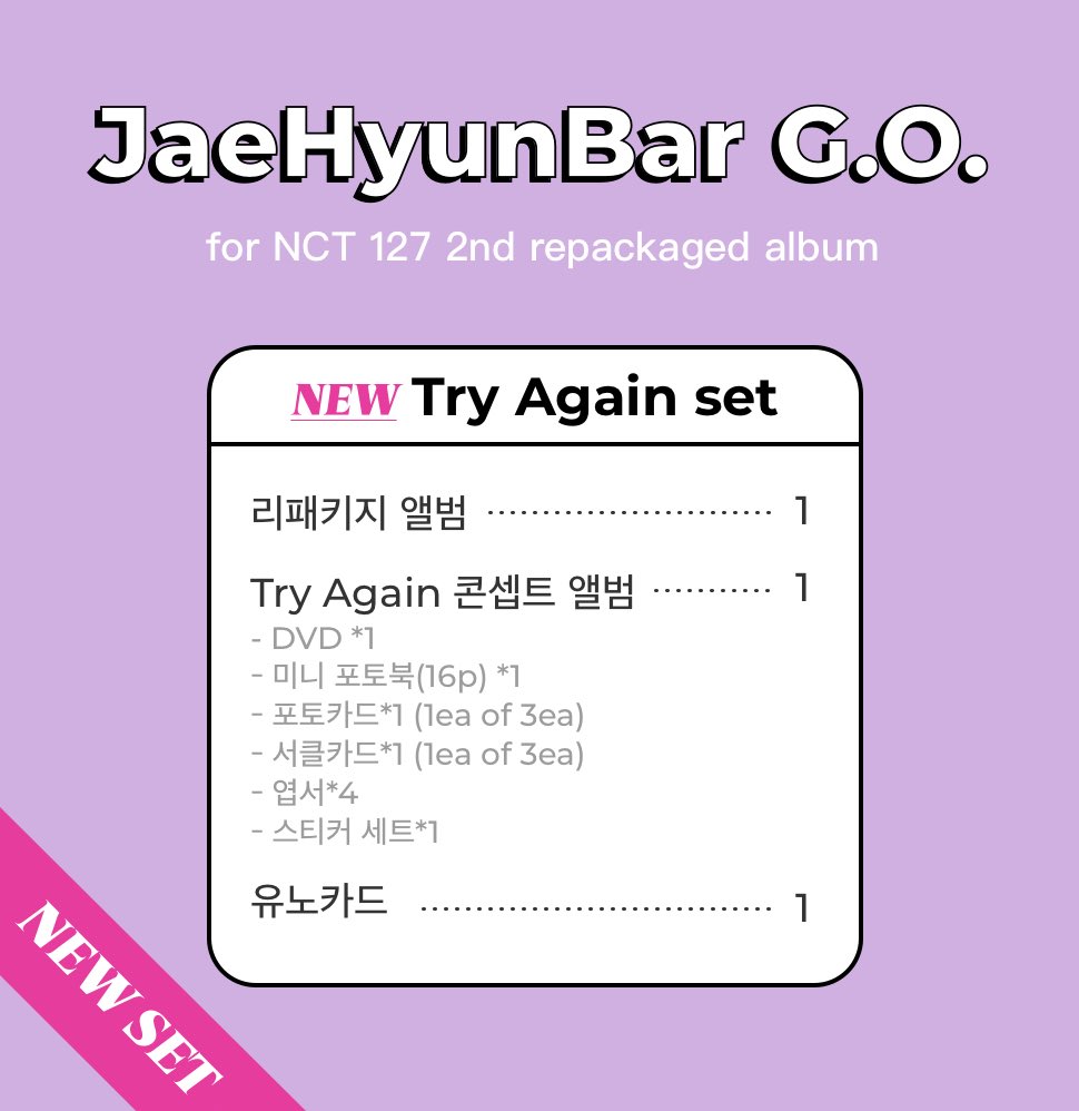 재프라면 Try Again에 대해 특별한 감정이 있겠죠?💖😭재현이를 사랑하고 Try Again 아껴주신 팬분들위해 평생 간직할수 있는 Try Again 콘셉트 앨범을 리팩 특전으로 준비했습니다 이특전은 이득 없이 NCT 127리팩 판매량만을 위합니다 많이 사랑해주세요!!!
