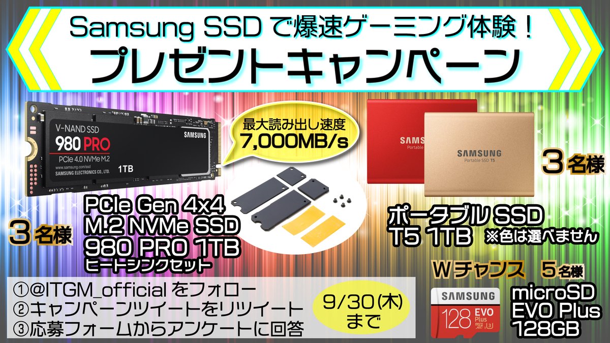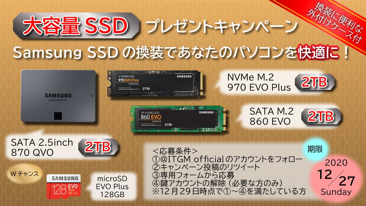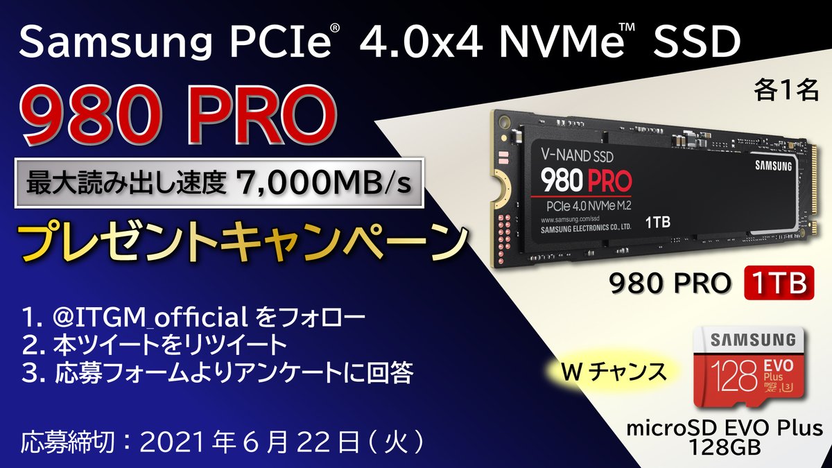 @ITGM_official をフォローの上、本ツイートをリツイート&アンケート(bit.ly/2NHWpFv)にご回答いただいた方の中から抽選で1名様に、なんと「860 QVO」1TBをプレゼント!