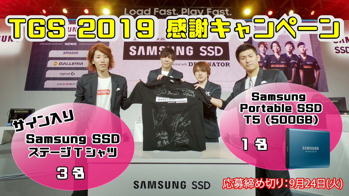 Samsung SSDステージを盛り上げてくださった皆様に感謝してDeToNatorメンバーのサイン入り『Samsung SSDステージTシャツ』と『Portable SSD T5』をプレゼント👏🏻