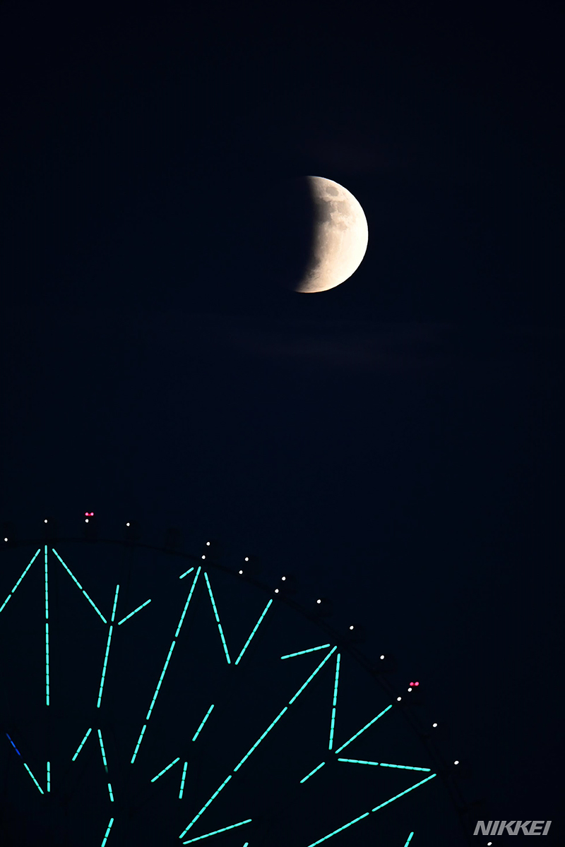 月の一部が地球の影に入って欠けたように見える部分月食が始まりました。月食が最大になるのは東京では午後6時2分です。野岡香里那撮影