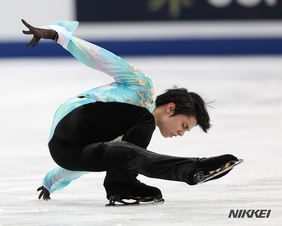 フィギュアスケートのグランプリシリーズ第4戦のNHK杯は12日、東京・国立代々木競技場で開幕し、男子ショートプログラムでは宇野昌磨が首位に立ちました=上間孝司撮影 s.nikkei.com/3c5wMLO