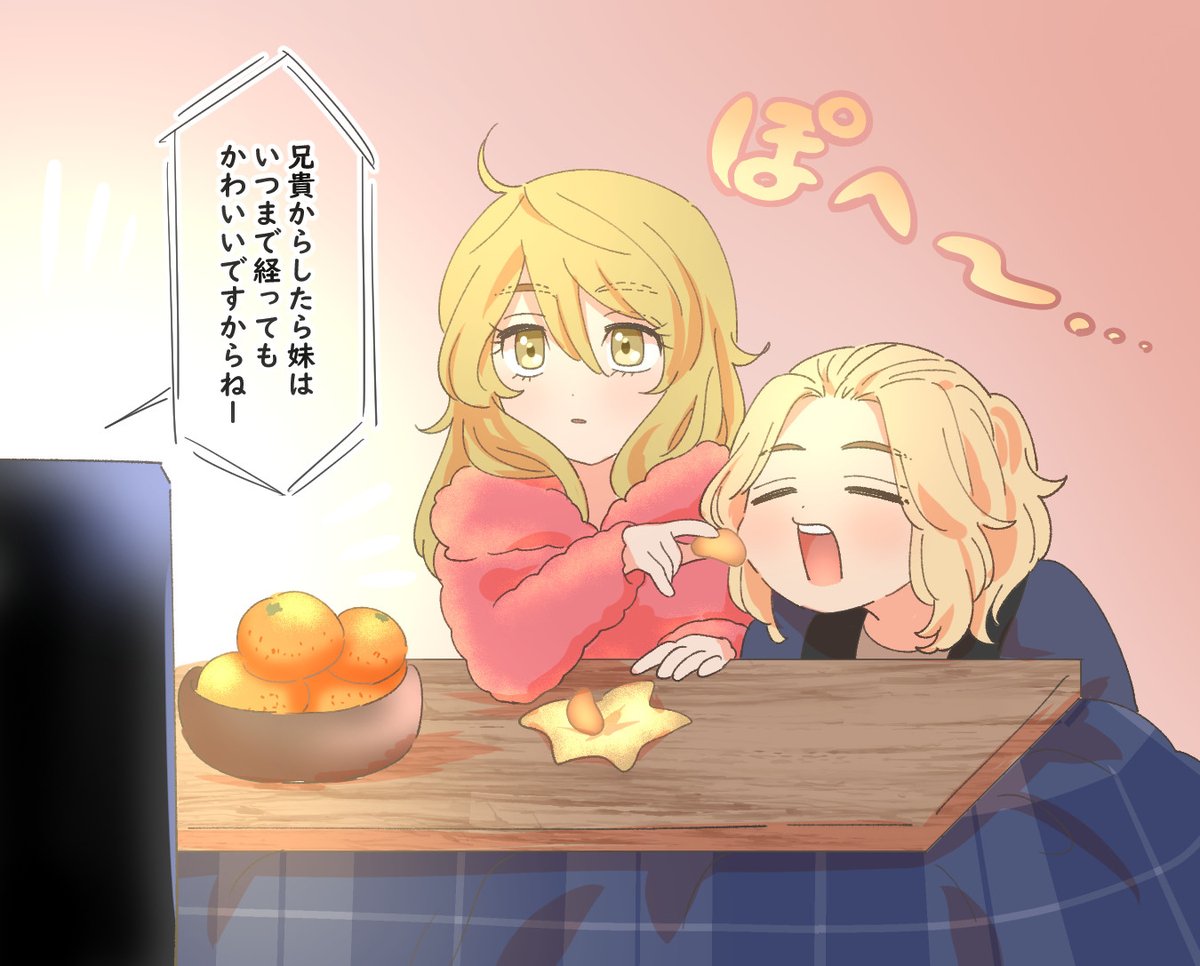 こたつとみかんでまったり兄妹