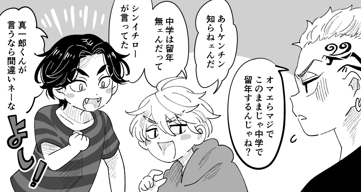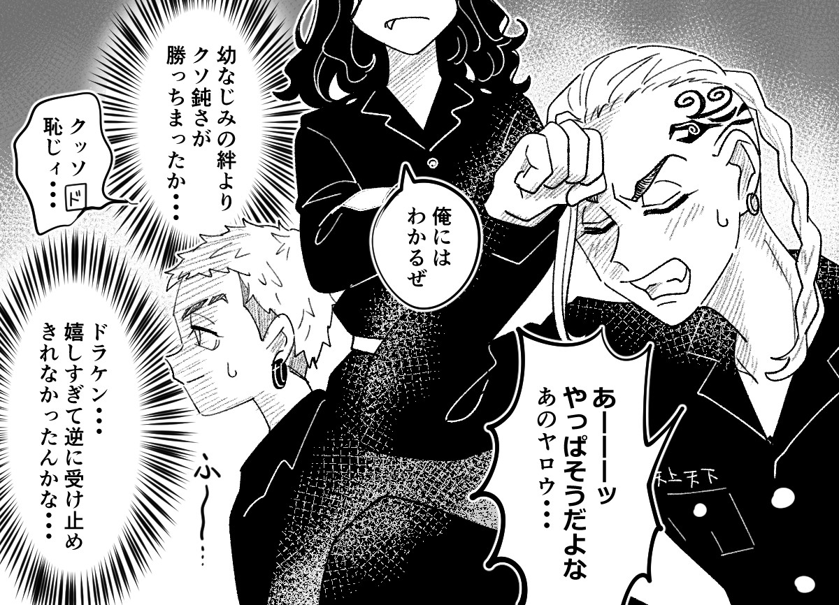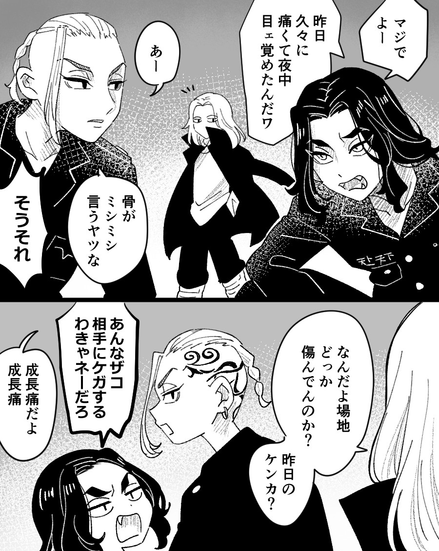 体格差をもってしてもマウントをとれなかった場地とケンチンです