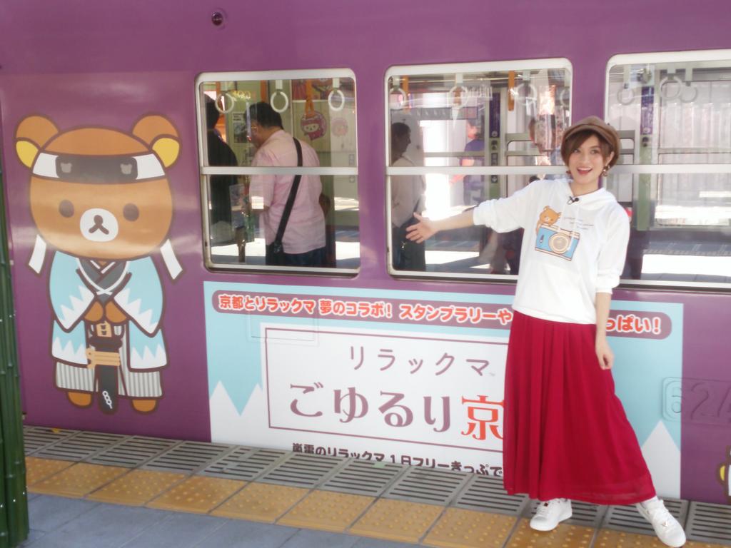 【リラックマ】嵐電特別電車のラッピングが完成!イベント期間中、四条大宮駅と嵐山駅間で運行いたしますが、明日16日のみ嵐山駅に留置しています。運行日など詳しくは rilakkuma-kyoto.com #リラックマごゆるり京都
