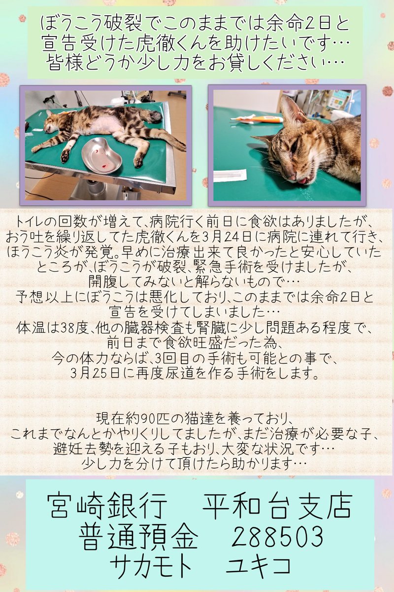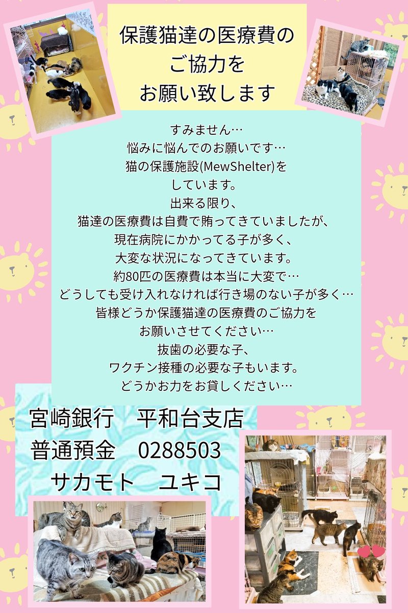 色々重なってて、もううちでは保護は積極的にはしてないので、ご支援もご寄付もお願いする事自体をどうしようかと思いましたが…悩んでもいられない状況になってきてしまったので、思い切ってツイートしました😢そろそろご飯も無くなってきてるので、ご支援のお願いもツイートさせて