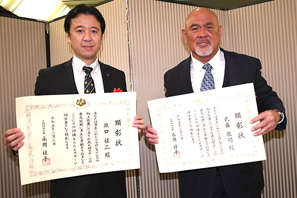 坂口征二相談役(代理出席:大張高己社長)と武藤敬司さんが“スポーツ功労者文部科学大臣顕彰”を受賞!