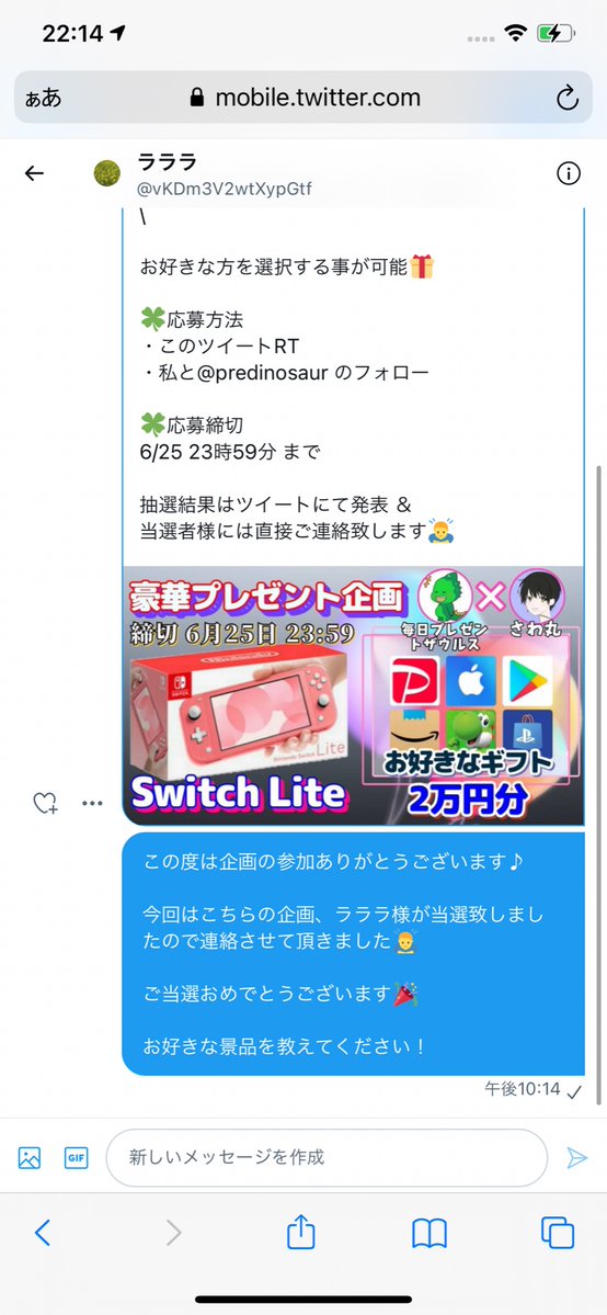 当選者様には私からDMご連絡致します。