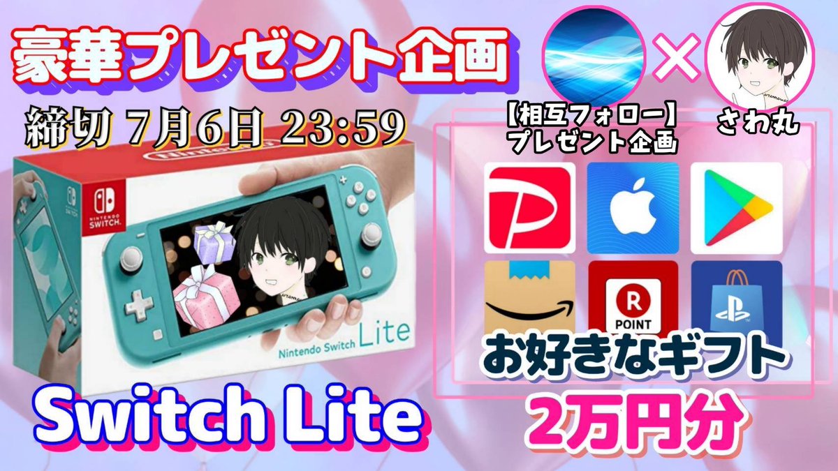 Switch lite or ギフト券2万円分✖️2名様