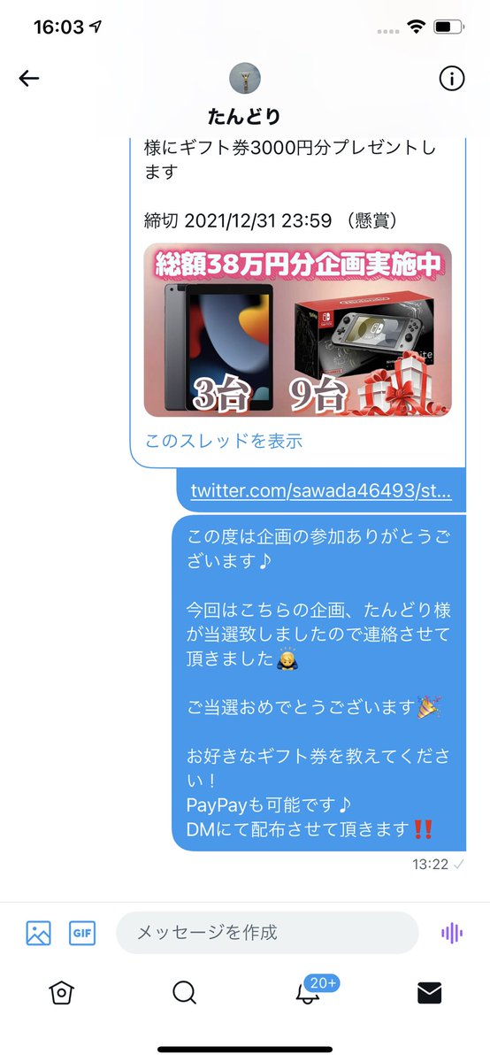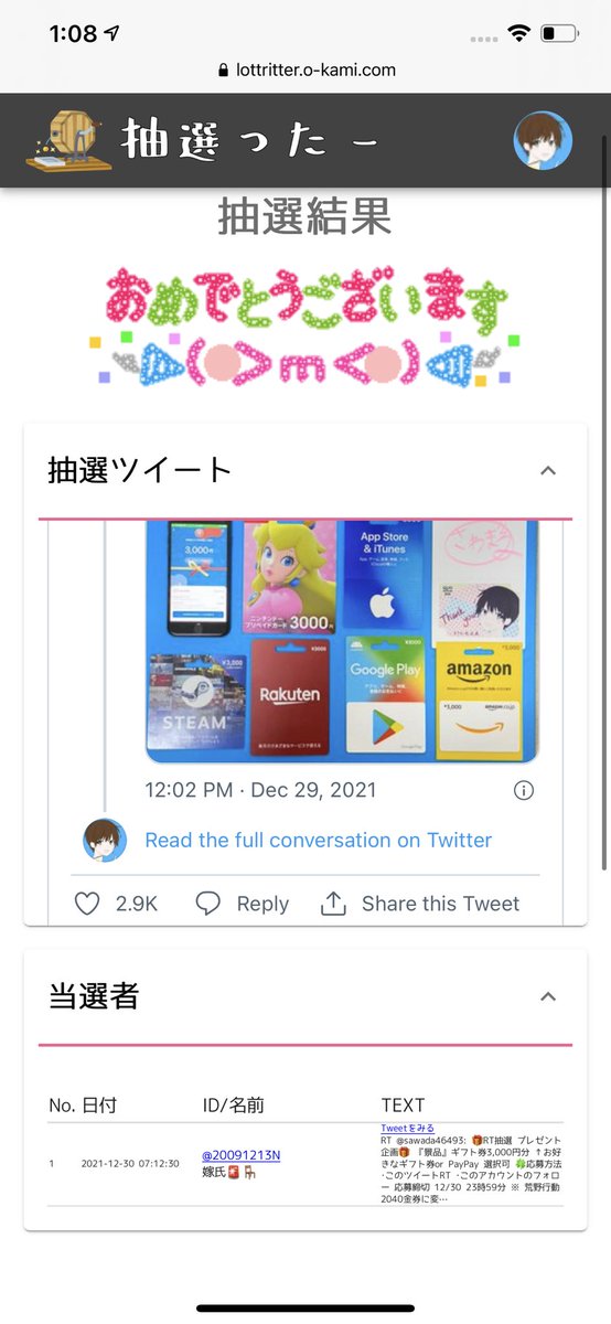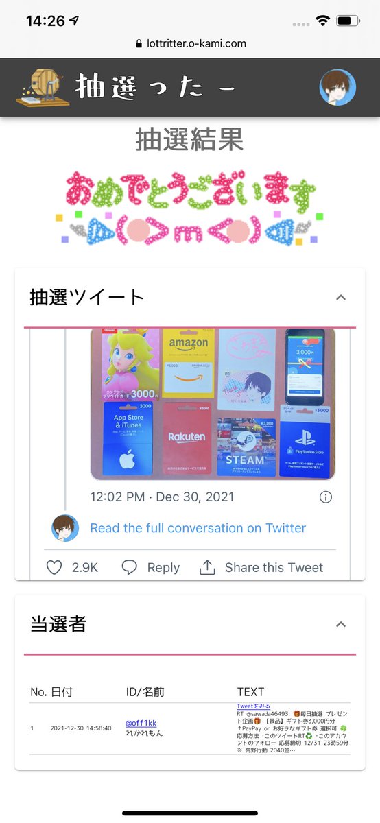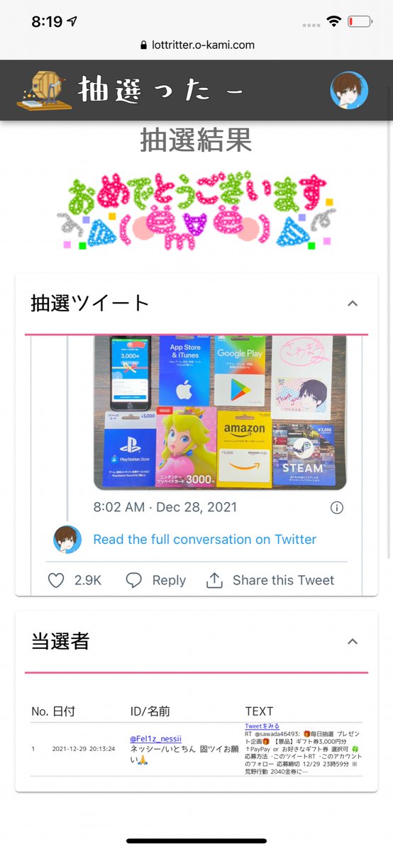 抽選結果はツイートで発表致します🙇♂️