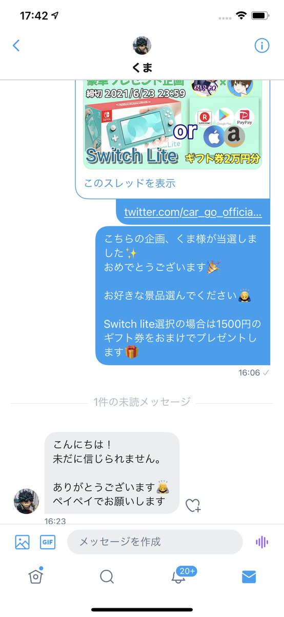 ✨Switch lite or ギフト券20000円✨