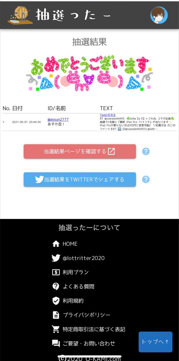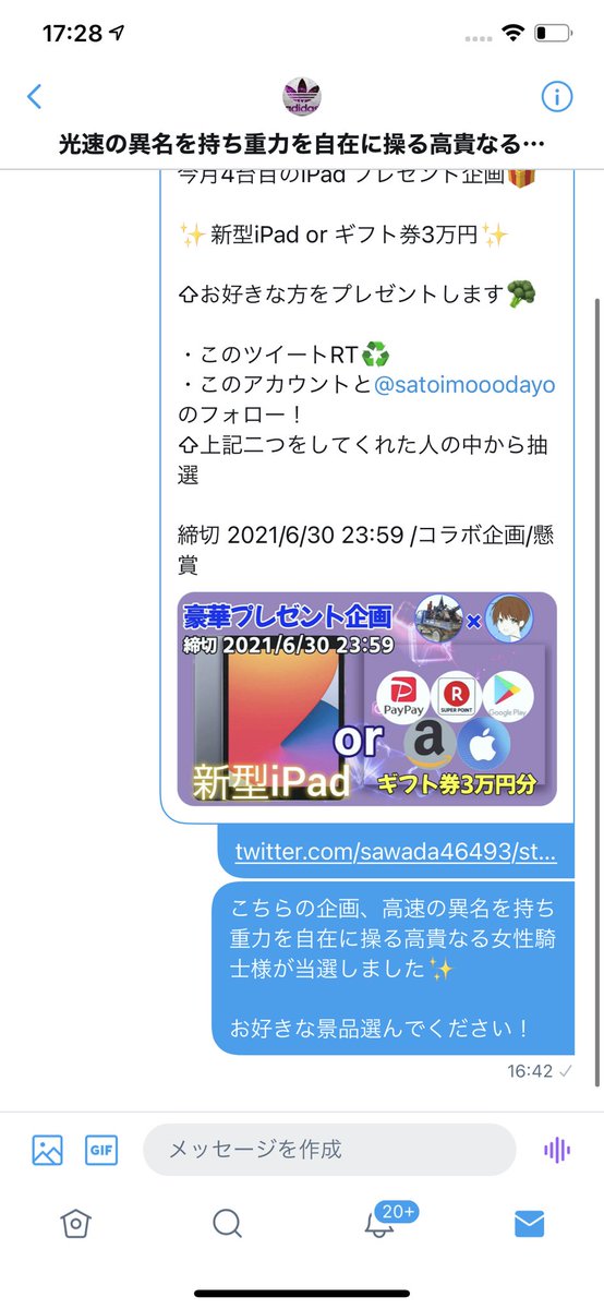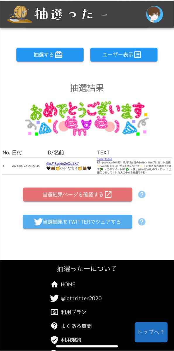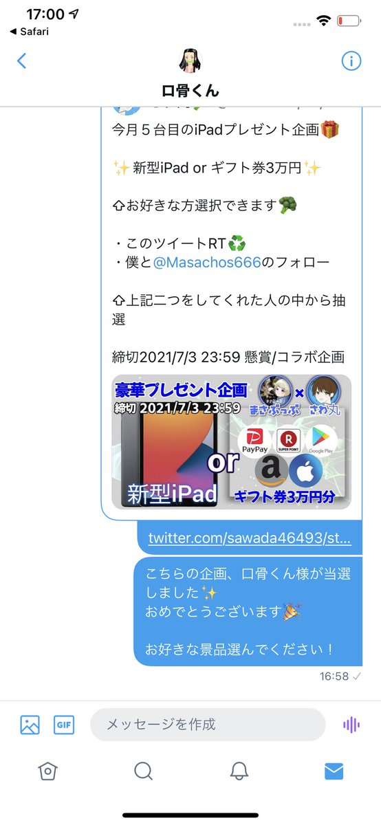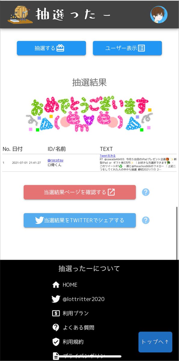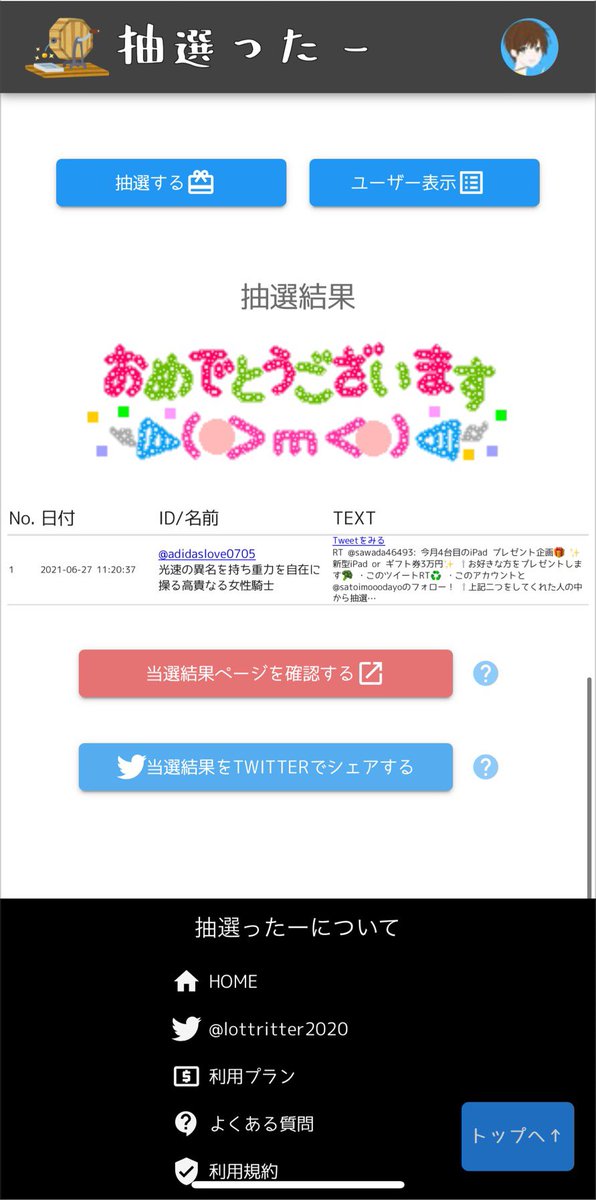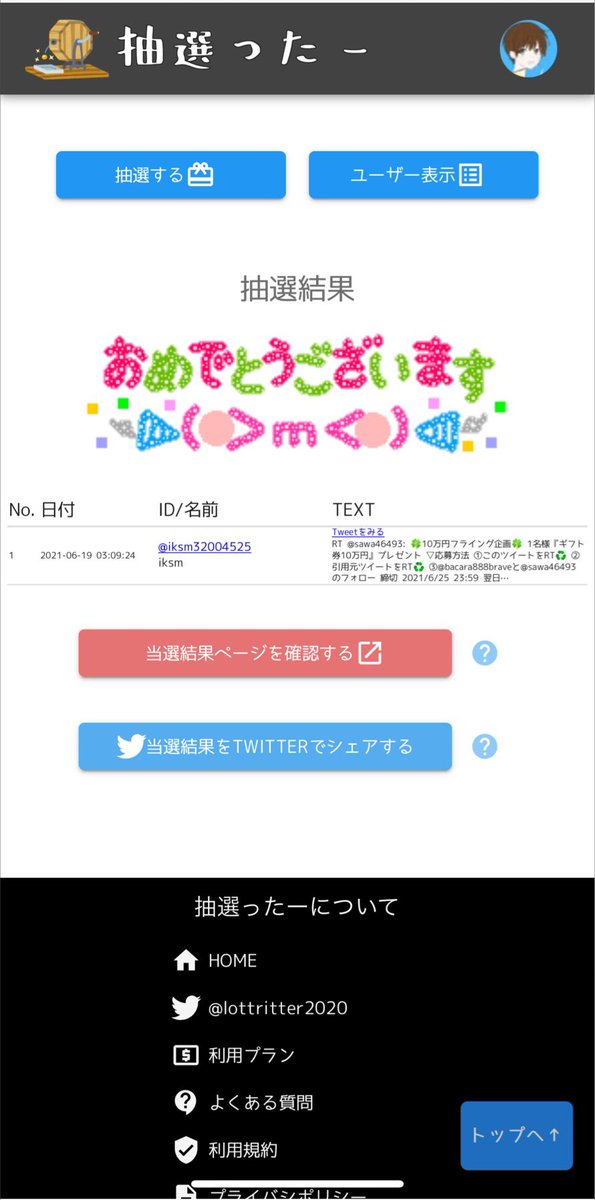 ⇧上記二つをしてくれた人の中から抽選