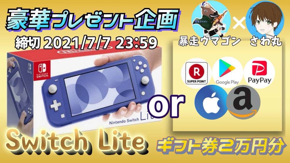 ✨Switch lite or ギフト券2万円分を✨