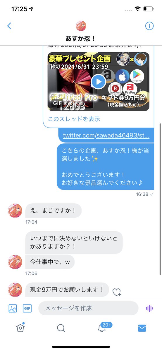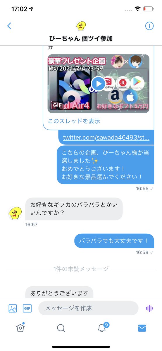 ⇧上記二つしてくれた人の中から抽選で1名様に当たります♪