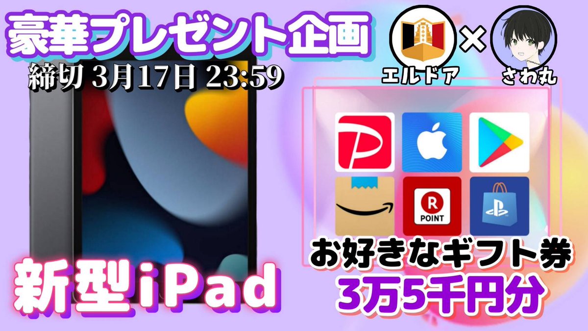✨新型iPad or ギフト券3.5万円分✨