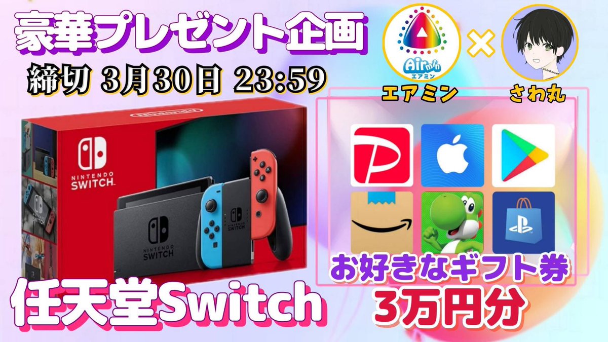 今月27回目 新品Switch プレゼント企画