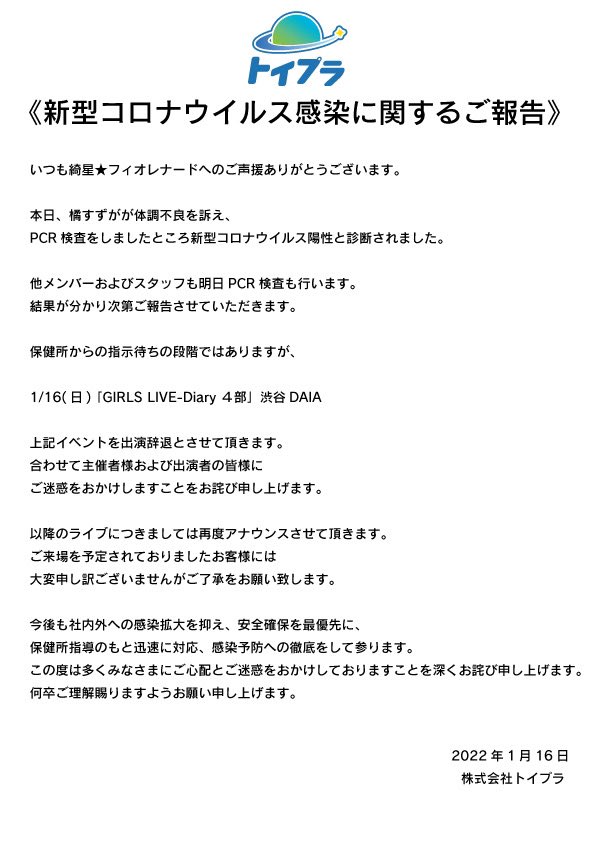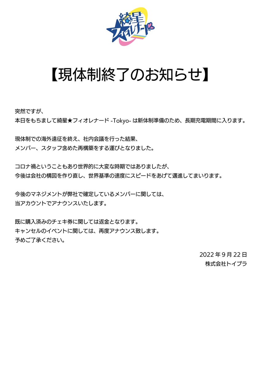 《垣村玲那に関する重要なお知らせ》