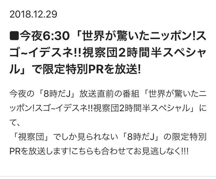 本日の #Mステスーパーライブ2018 でも #8時だJ の告知が流れたり、嵐さんが告知してくださってます!!