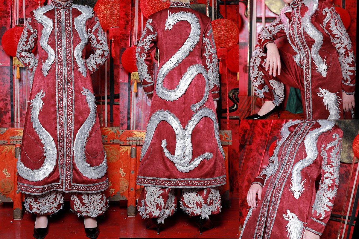 シルエットから素材までこだわって丁寧に作りました。龍の鱗は1枚1枚制作🐉後ろの模様は完全自己解釈です。