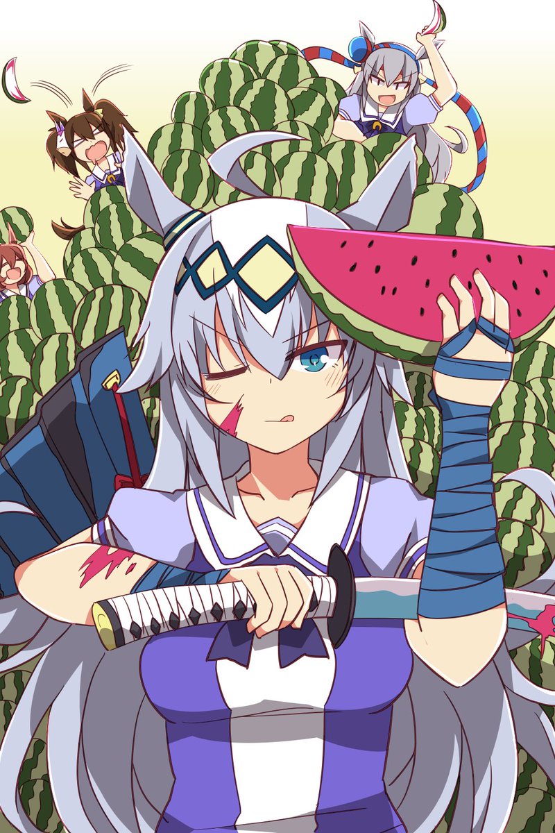 オグリキャップのスイカを食べてるシンボリルドルフ