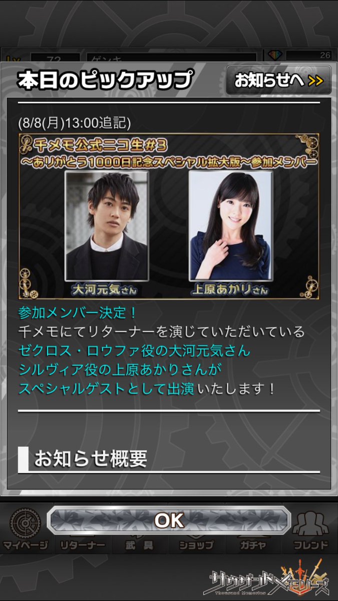 千メモ公式ニコ生、ご視聴ありがとうございました!!