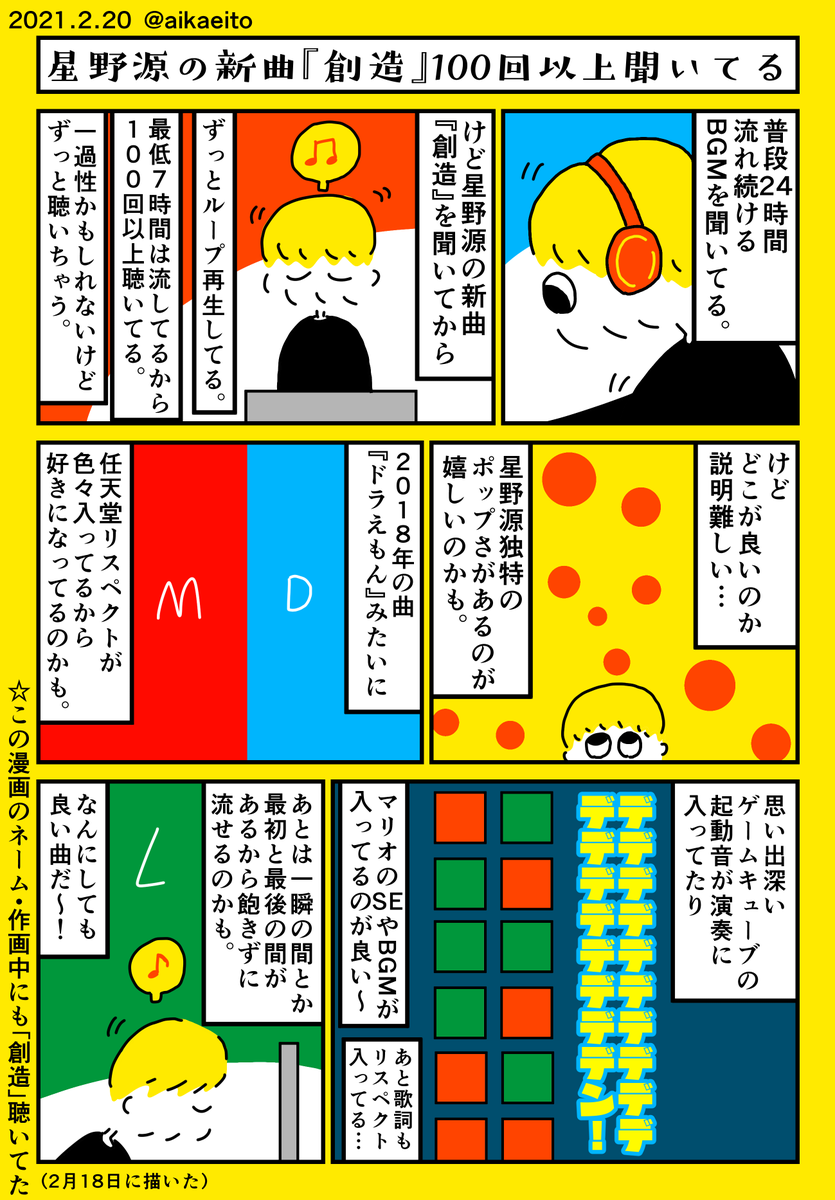 星野源の新曲『創造』100回以上聞いてる