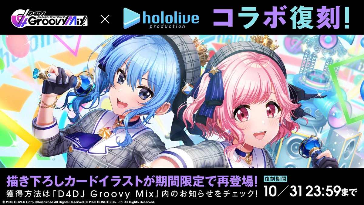 スマートフォン向けリズムゲーム「D4DJ Groovy Mix」1周年を記念し、ホロライブコラボガチャ復刻決定🎉