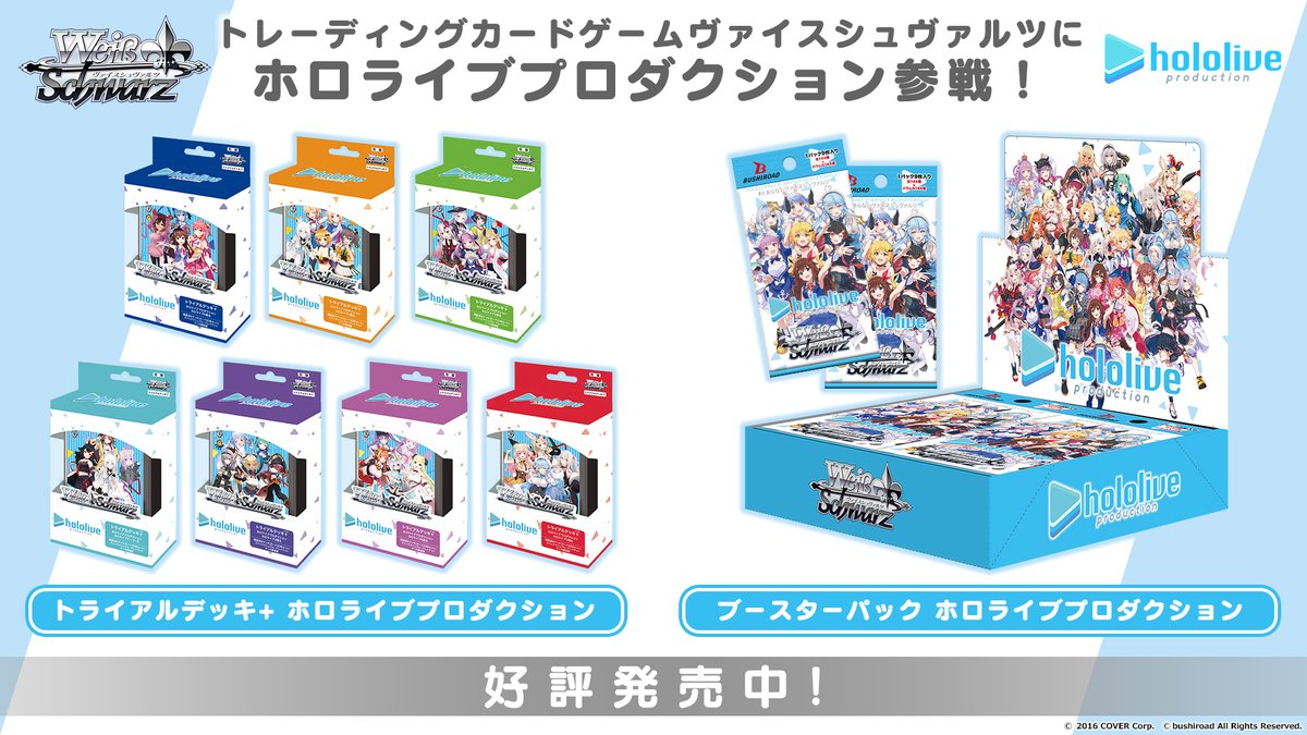 トレーディングカードゲーム、ヴァイスシュヴァルツよりトライアルデッキプラスとブースターパック「ホロライブプロダクション」が好評発売中✨
