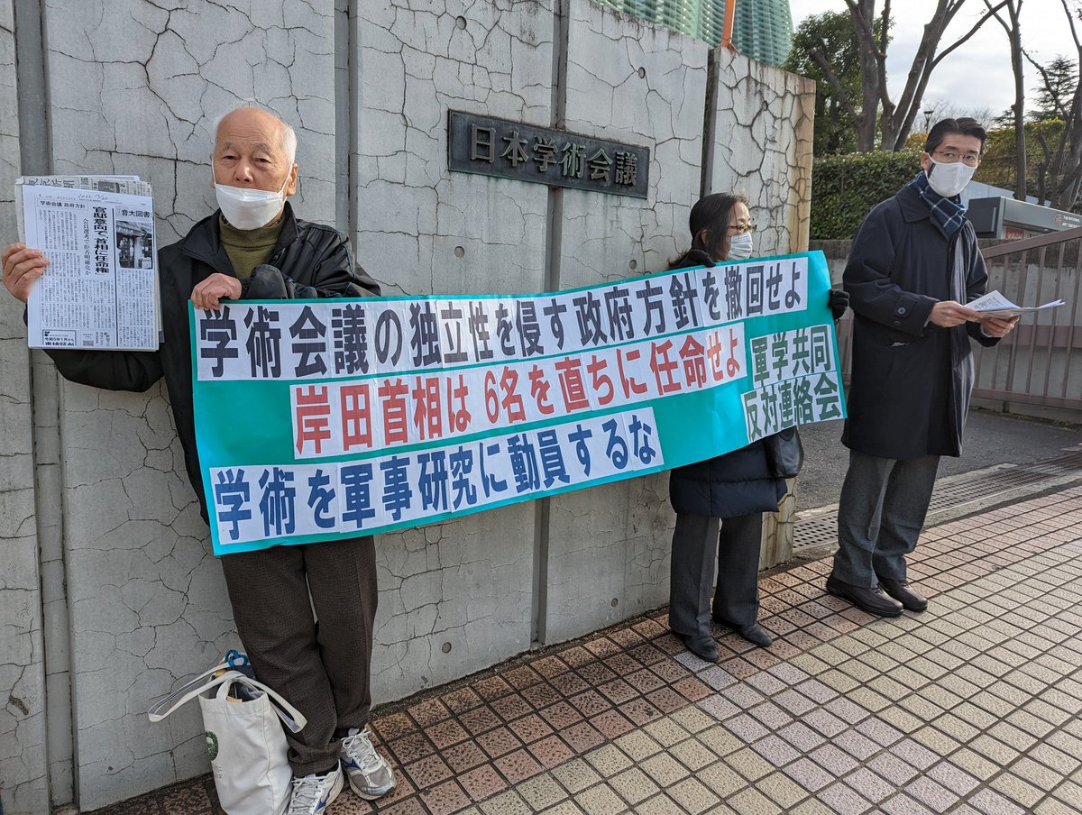 本日の学術会議総会で、まさにこの問題が議論されるため、軍学共同反対連絡会の呼びかけでスタンディングが行われています📢