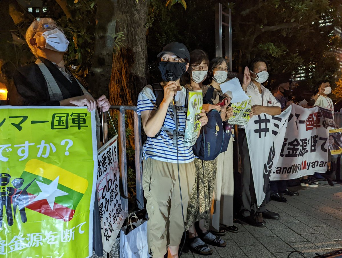 7月26日午後、国連大学前広場で、ミャンマー国軍による民主派活動家ら4人の死刑執行に抗議する集会。