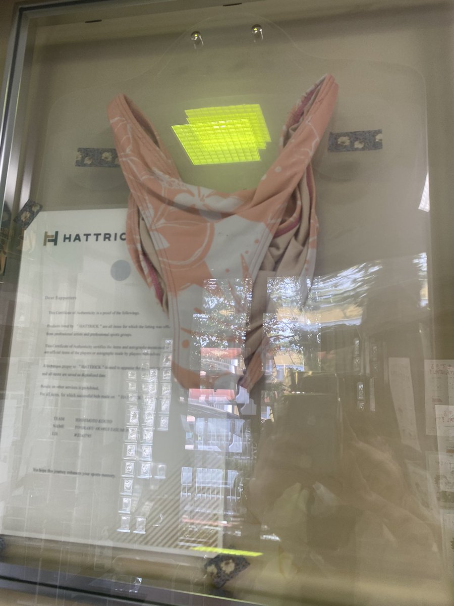 の初代水着。町内で12歳以上のワクチン接種が開始されるのに合わせて額装し待合室に展示致しました。 ワクチン接種に不安な皆様がリラックスして筋肉の力抜けますように。そして安心して頂けますように。
