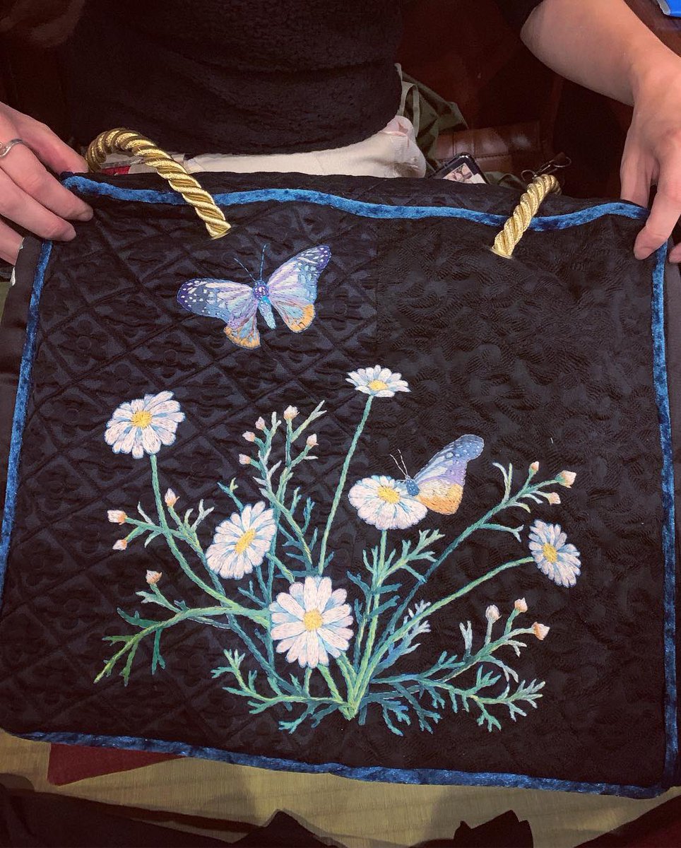 ゆみこさんの刺繍も人柄も大好き!繊細で優しいけどヒリヒリしてて格好よい。お花とてふてふ🦋