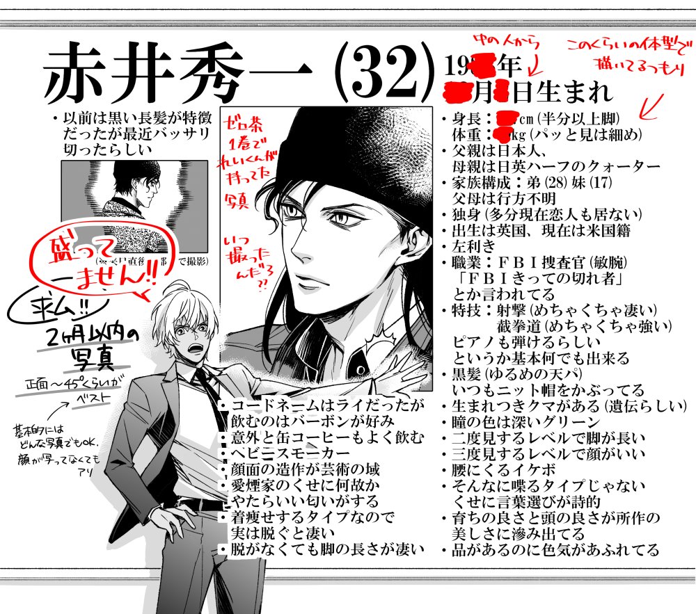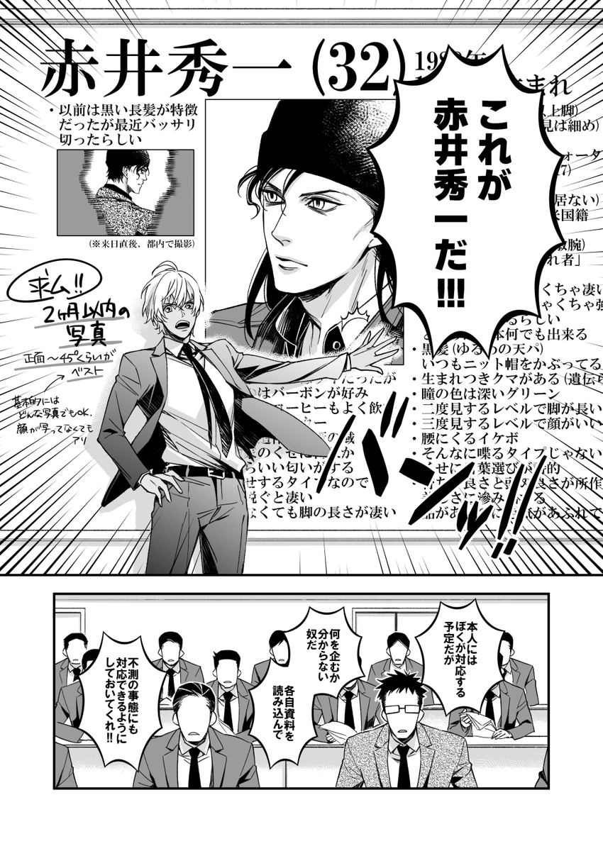 御要望頂いたので、頭悪い公安漫画の1コマ目の全貌です。 塗り潰してる所は好きな数字を入れてください。 基本的には公式に準拠してると思いますが、資料作成者が安定のあかいの前では失敗する病(公式)を発症した為に途中から『あかいのかっこいいとこベスト100(抜粋)』みたいになってしまいました。