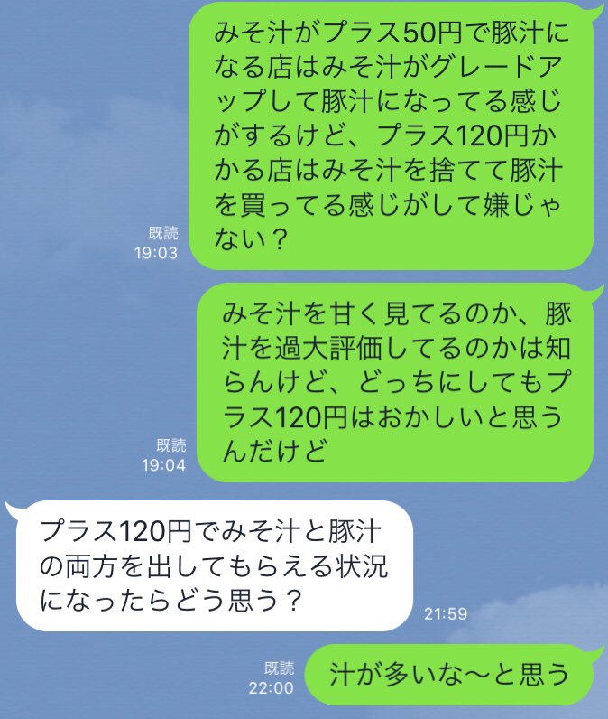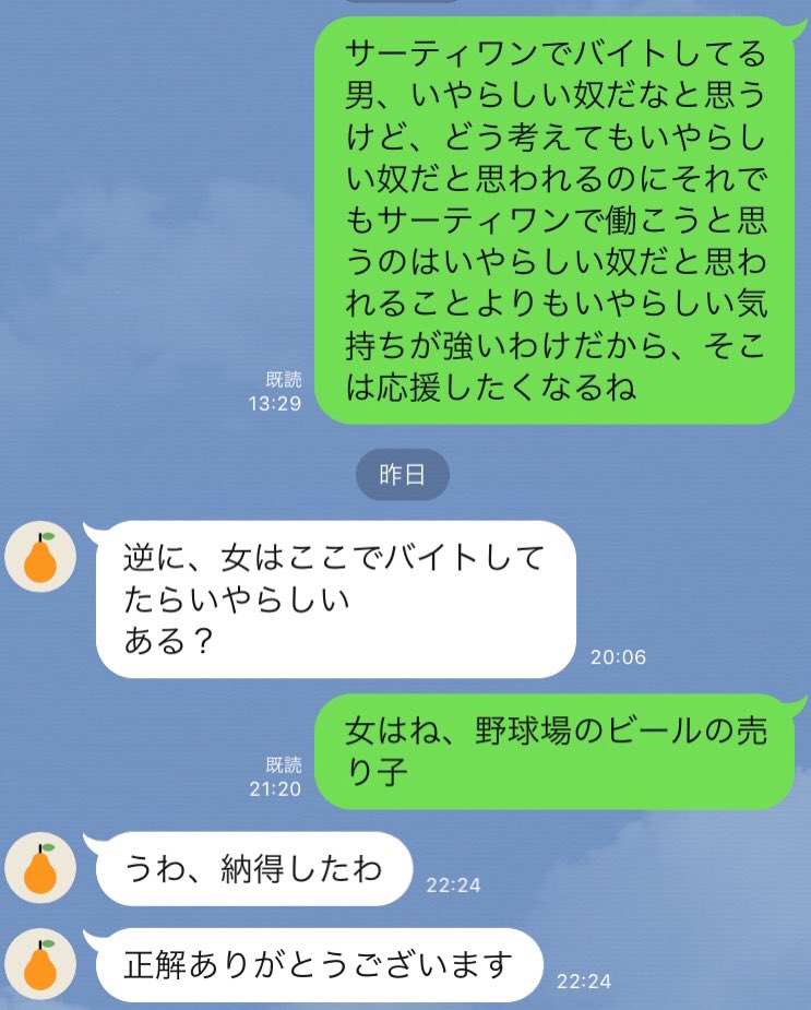 高1の時の家庭科で「ネックレスを作るならどの宝石を何個つけますか?」って先生が質問して、当てられた人が「ダイヤ1個」と言って、次の人も「ダイヤ2個」「ダイヤ3個」と答え始めて、つまんね〜と思ってたら、次の人が「エメラルド60個」って答えて、そんなウケてなかったの月1で思い出して笑ってる