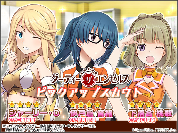 なお、<ダーティー・ザ・エンゼルス ピックアップスカウト>と、<シャーリー【撃壌】アナザーピックアップスカウト>は10/4(月)14:59まで開催中です!