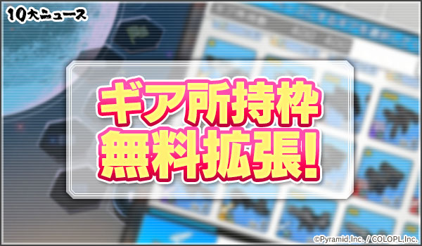 1/22(金)15:00より「ギア所持枠無料拡張」を実施予定!