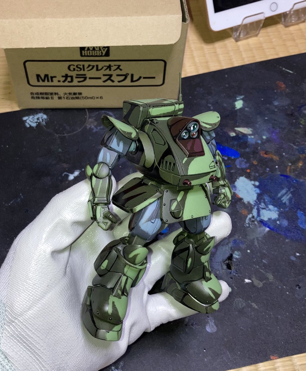水性塗料で、エアブラシはベランダorダンボールの中で吹きました👍