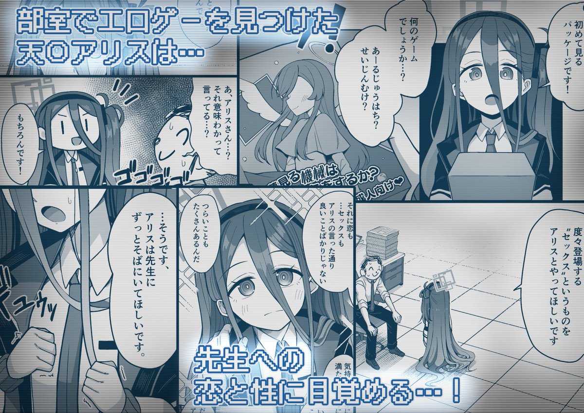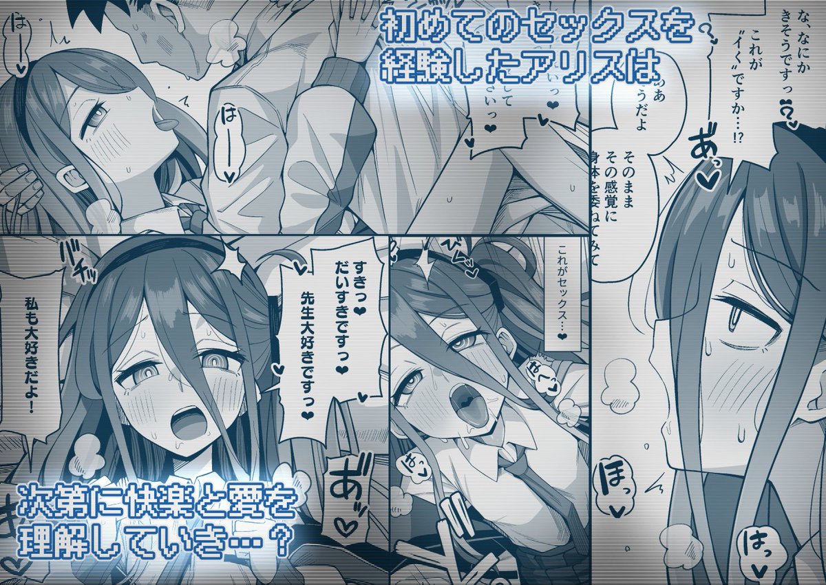 前半はエロゲーをきっかけに性と恋に興味津々なアリスと先生のラブラブえっち、後半は様々なえっちを通してドスケベになったアリスに誘惑されハードラブラブえっちする内容の64ページです