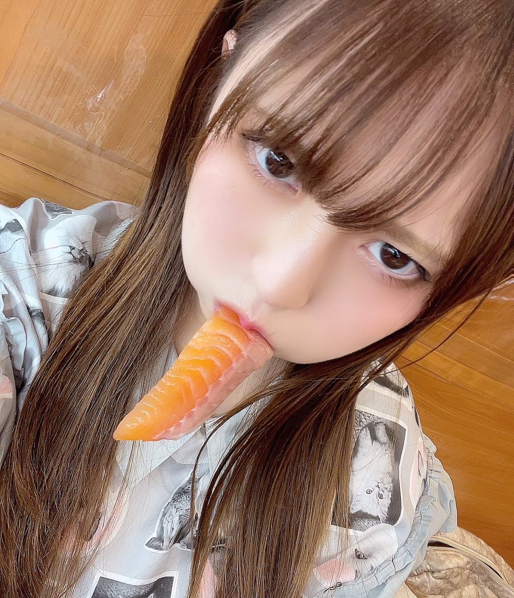 サーモン食べながら睨む女。
