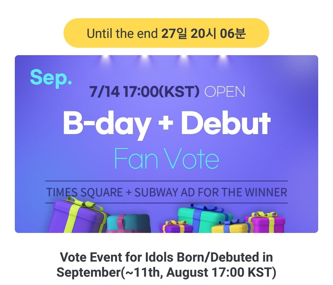 Fanplus' " B-day + Debut " event had started.We won a Birthday AD at Time Square for CHEN last year.This year,too, let's do our best and win that for him.CHEN is currently 3rd,follow our voting tutorials from last year. If there are changes,we'll update.