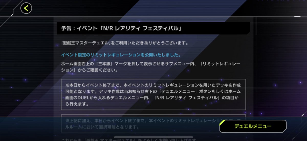 マスターデュエル、NRフェスが決まってからTwitterとYouTubeでガンガン広告流してるの見えるし、そろそろ本格始動か…?NRフェスの後に恐らく新パックとデュエルパスの更新来るし