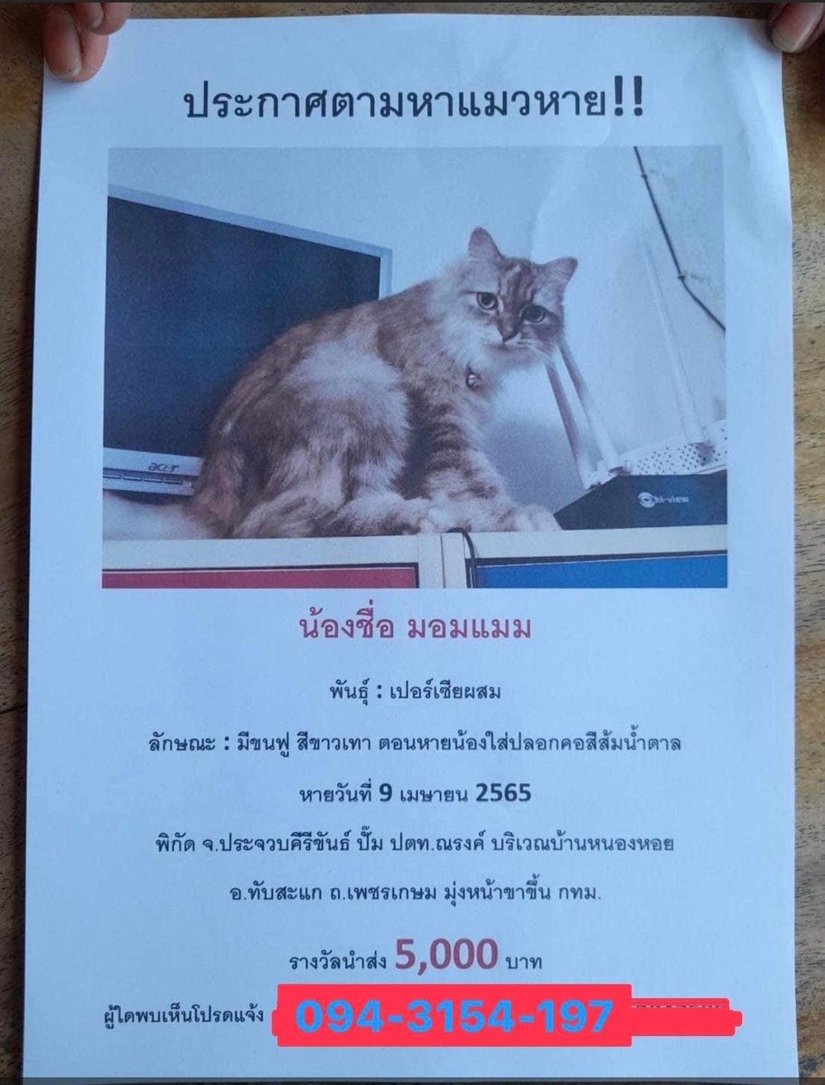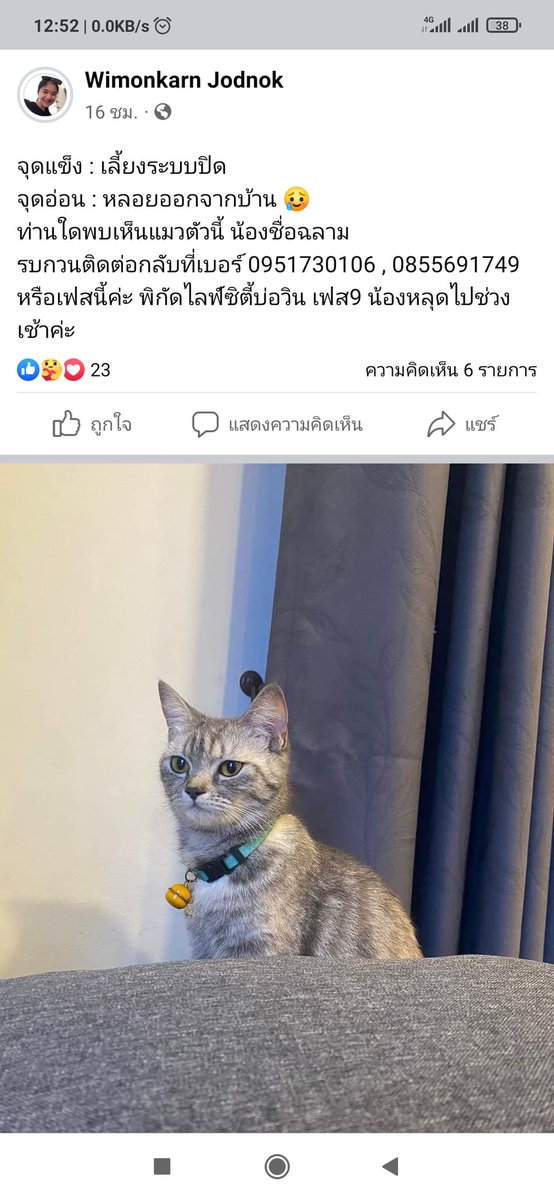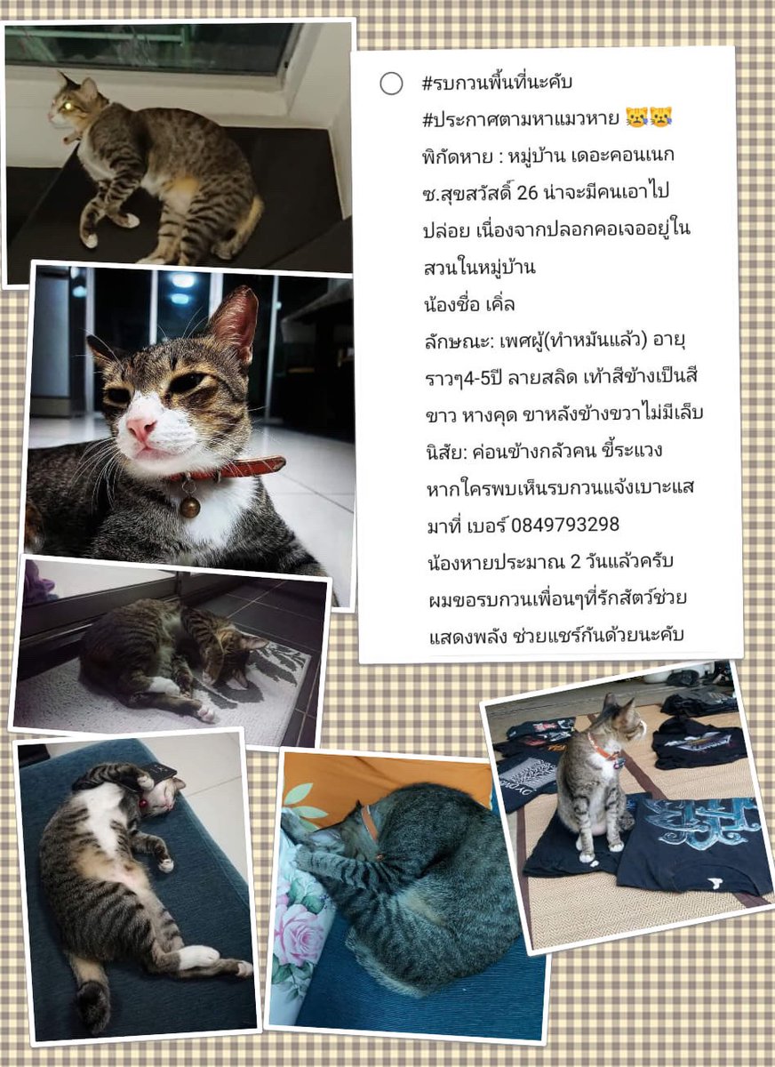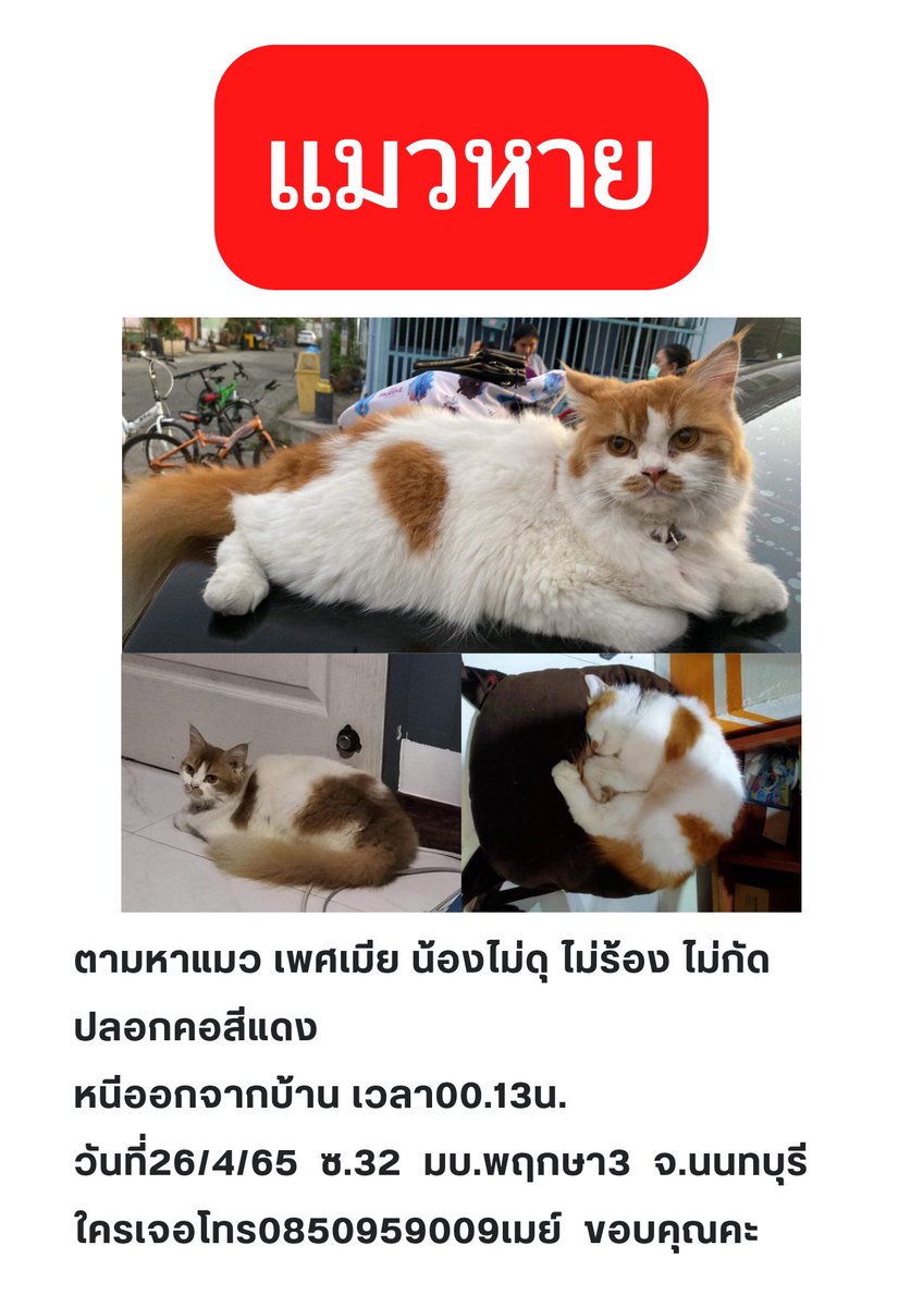 พบเจอน้องแมวคล้ายในภาพสามารถติดต่อเจ้าของได้เลยนะคะ twitter.com/aullalla/statu…