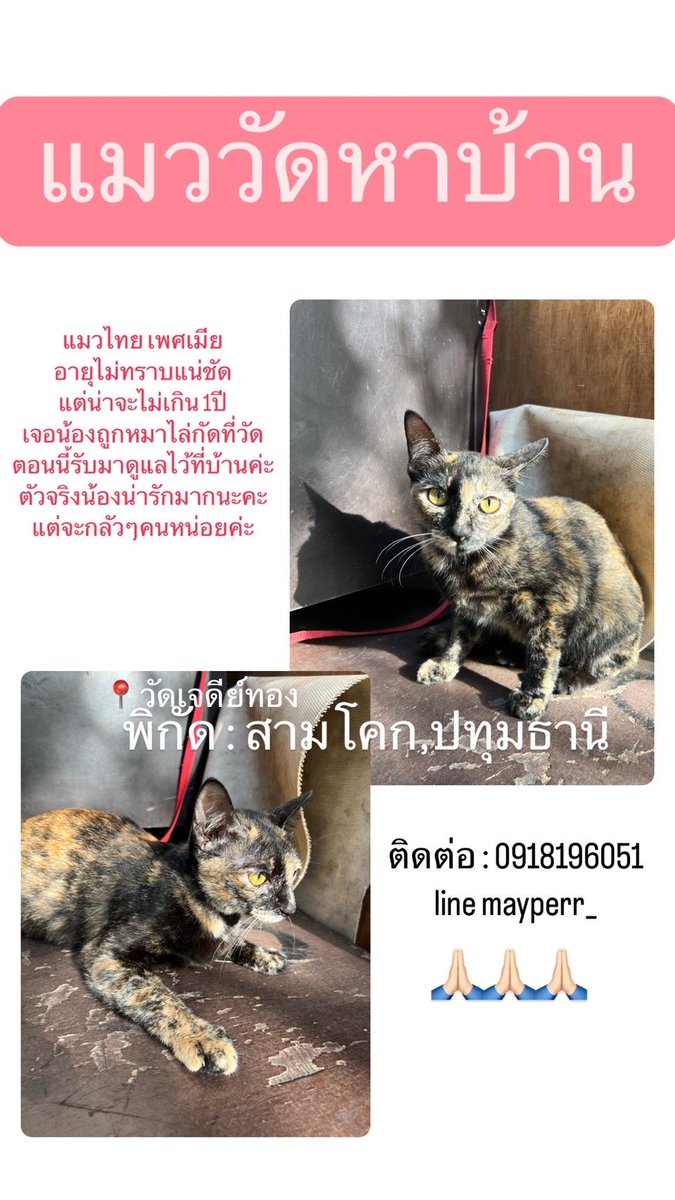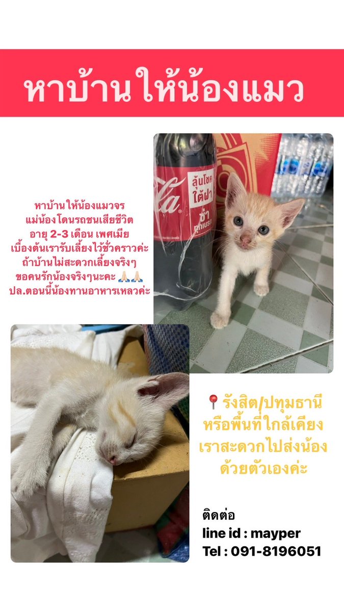 ภาพเพิ่มเติมของทวิตนี้นะคะ ใครสนใจน้องติดต่อไปได้เลยค่ะ เจ้าของเคสต้องเข้ารับการผ่าตัดตอนก่อนสิ้นเดือนนี้ ไม่สะดวกจะดูแลน้องต่อแล้วนะคะ twitter.com/CatsterClub/st…