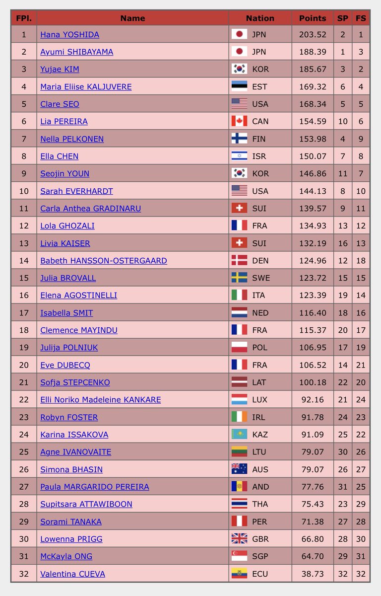 【JGP フランス大会 女子結果】