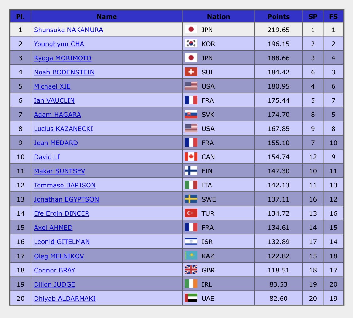 【JGP フランス大会 男子結果】